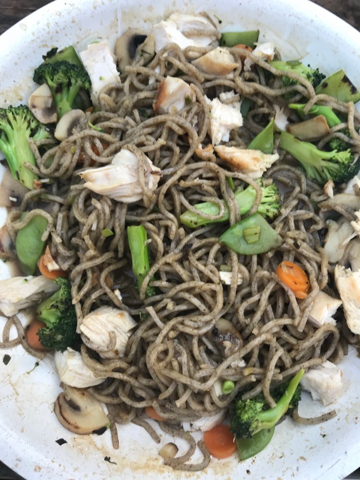 One of my “learn to van life” goals is to figure out how to eat healthy on the road. I brought some heat and eat soba noodles in a pouch from the produce section, some rotisserie chicken, and some veggies so I can make soba noodles. I don’t want to try to be sanitary with raw meat at this point.