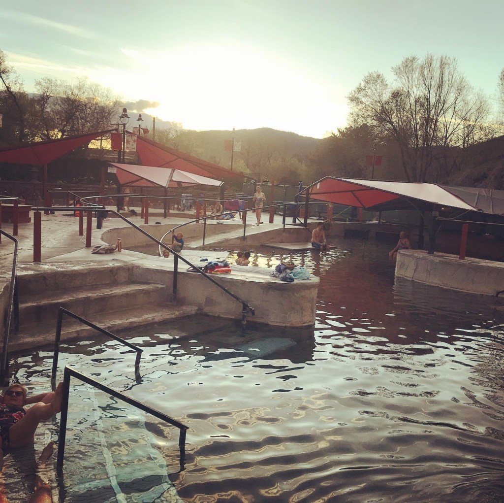 My next detour lets me skip the traffic of Salt Lake City by going through the lovely college town of Pocatello, down through a “dotted line road,” then connecting to I-80. I couldn’t find any camping spots I liked on this route – they were either remote boondocking or expensive RV parking lots – but I spied Lava Hot Springs and decided to grab a cheap off-season motel room and enjoy the pools. Ahhhhhh.